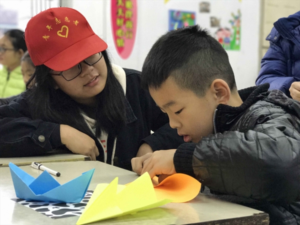 活动当天,志愿者们于8:00到达丽岙一小,开始场地布置和前期准备工作。8:20小朋友陆续到齐,志愿者们与小朋友们进行简单交流,有了初步地认识。8:30活动正式开始。首先是感恩故事分享环节,主持人讲述感恩故事,调动现场气氛,积极鼓励小朋友们感恩自己,对自己说句谢谢。随后,由志愿者给每位小朋友分发彩纸和笔,在志愿者的引导下,小朋友们在纸上写下对自己的感谢的话语。孩子们稚嫩的笔尖写出的短短话语,却令志愿者们感动不已,这个年纪的纯真最为可贵。写好后,由志愿者教小朋友们折纸。折纸形式花样百出,有象征着美好祝愿的千纸鹤,也有象征着放飞理想的纸飞机,还有美丽的花朵与可爱的兔子。在折纸过程中,小朋友与志愿者的关系也更加亲密,不少小朋友都把自己的折纸作品送给了志愿者,还主动要求要与志愿者合影。折纸环节结束后,孩子们拿出了自己带的围棋、积木等物品,邀请志愿者们一起游戏,整个环境其乐融融。活动最后,志愿者们将信封与信纸发给小朋友们,让他们写一封信《致未来的自己》,在写信过程中,现场响起了音乐《感恩的心》,志愿者与小朋友们一起,轻轻地哼着歌,写着字。音乐停止,信也写好,志愿者们与小朋友们一起,拍照留念。11:00,活动结束,志愿者们离开丽岙一小。