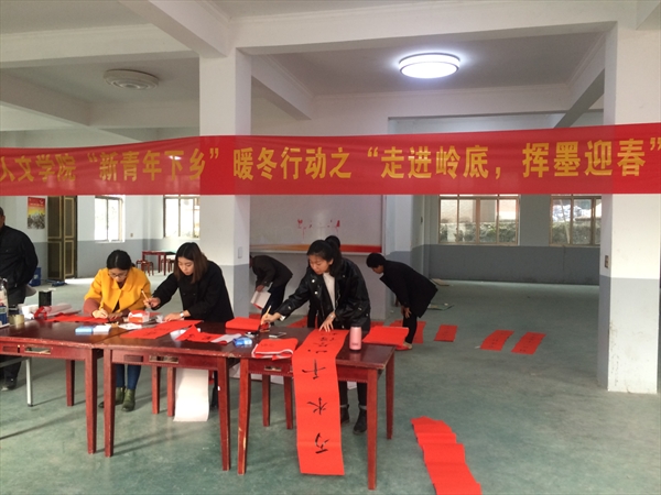 此次暖冬行动之“走进岭底,挥墨迎春”的开展旨在传承和弘扬中华民族的优良传统,让人文学子在回馈社会中彰显人生价值,并给村民们带去新年的美好祝福。