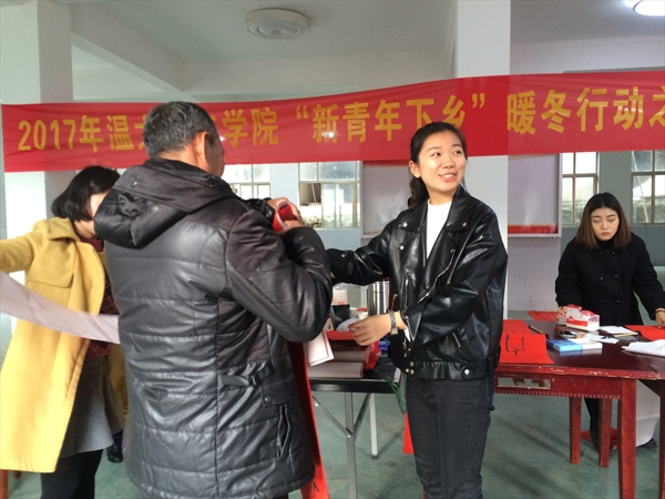 学生为岭底乡村民誊写了新春对联,给村民们送去了温大人文学子的暖心祝福。乐清电视台和乐清日报的记者们也来到了现场,对本次暖冬行动进行了相关的采访和报道。