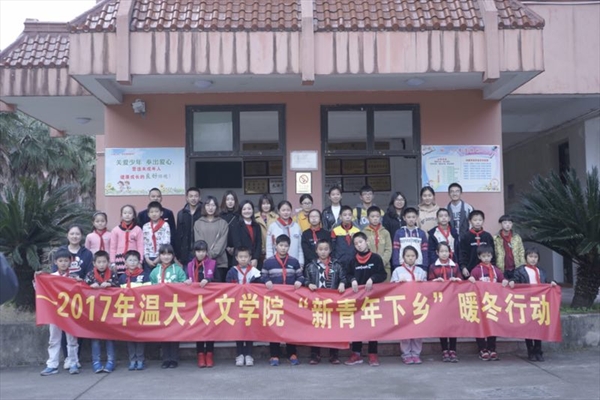 2017年1月7日,樱花小说 思源青年志愿者服务队及各位志愿者带着这个冬天满满的暖意前往乐清岭底学校开展“暖冬行动”志愿者活动