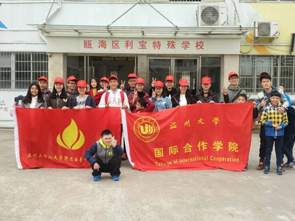 中午1点志愿者们全体集合在高教园区始发站乘坐83路公交车前往瓯海利宝特殊教育学院。在50分钟后到达瓯海利宝特殊教育学院。进入到校园内志愿者们找到负责的老师,并将志愿者分成绘画组与游戏组对孩子们进行不同方式的引导。在两个小组来到各自负责的教室开展具体活动前,由志愿者进行生活卫生常识的讲授,虽然有些孩子有些羞涩沉默但是大部分孩子们仍旧具有很高的参与热情。在播放完准备好的展示资料后,一个志愿者与一个小朋友对应开始了正式的活动,绘画组拿出打印好的卡通形象,对照着样本,志愿者和小朋友们一起开始描摹,通过卡通形象告诉孩子们正确的生活习惯,例如在餐前洗手,不吃掉在桌子上的食物,在饭后要刷牙等。用无言的方式达到教育效果。游戏组在把教室场地布置好后,与孩子们开始各样的游戏环节,通过手工,团队游戏,以及奖励等方式让小朋友们在一天的学习后放松,并且在游戏中学会合作与分享。孩子们对于活动形式有不一样的反应,但是一样的是有人一起游戏的喜悦和快乐。有些孩子有些喜怒无常,志愿者还是在耐心地教导着他们。随着渐渐的熟悉,孩子们也慢慢平复了情绪,加入到志愿者的引导之中,笑容也开始绽放。或许孩子们无法表达自己心中的意思,但是志愿者开始懂得了孩子们的想法和意愿,知道了如何让小朋友配合自己完成游戏和图画。下午四点,下课钟声响起,志愿者们在合影留念后,与孩子们不舍告别。