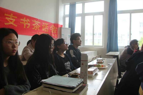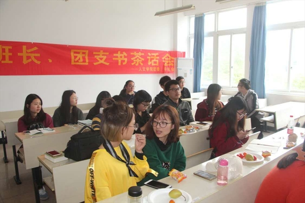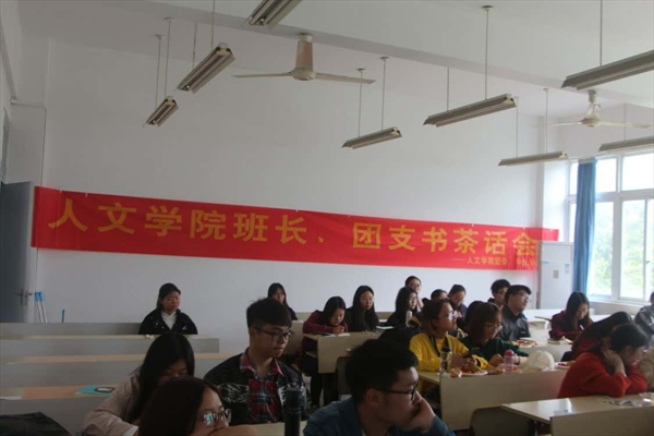 于人文楼208教室举行了班长、团支书茶话会。学生科邢芳芳老师、学生会主席团及部长们出席了本次茶话会。
