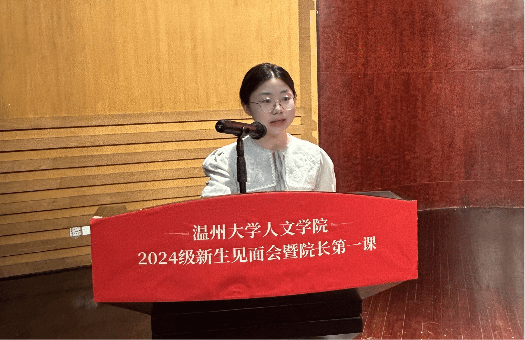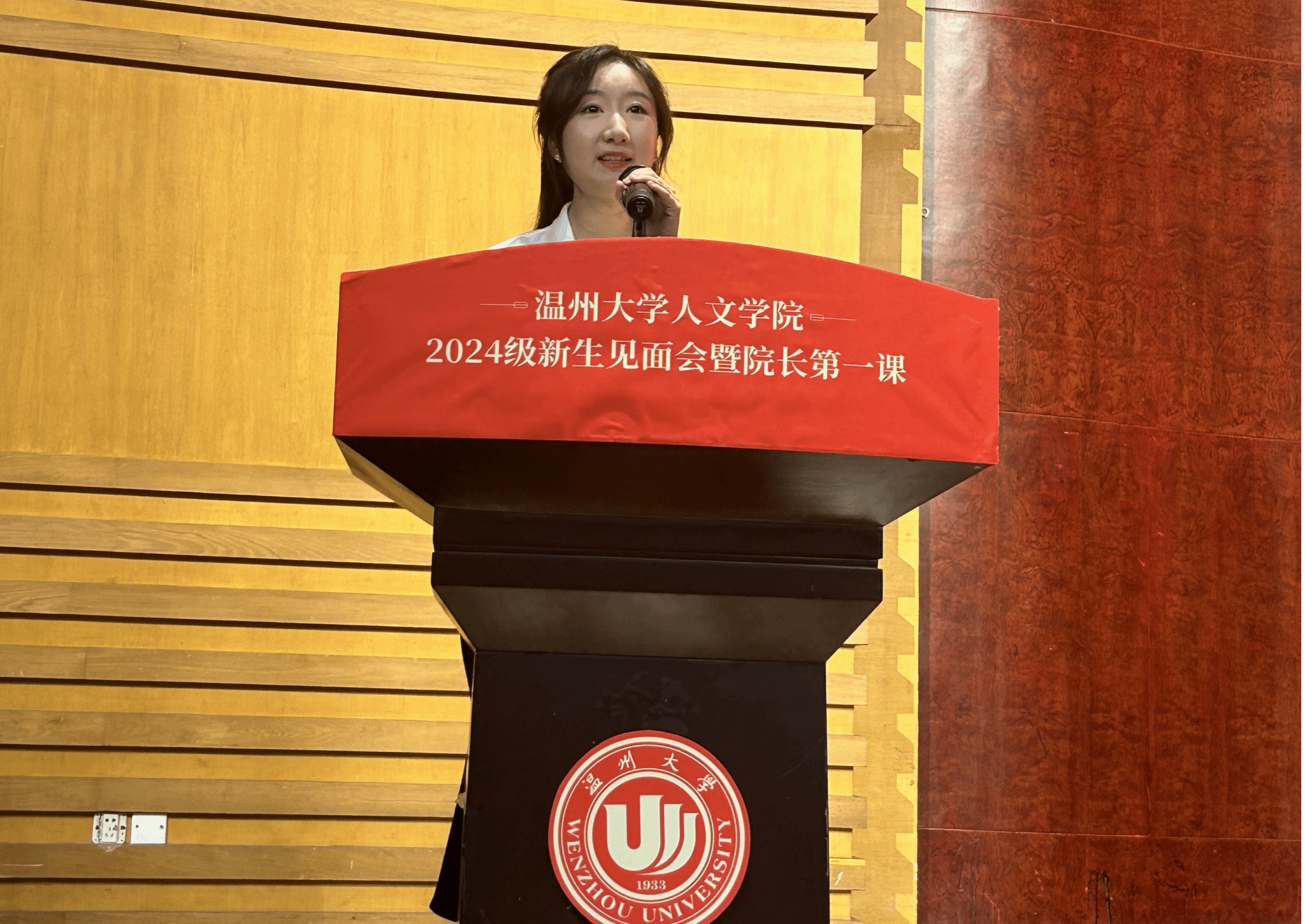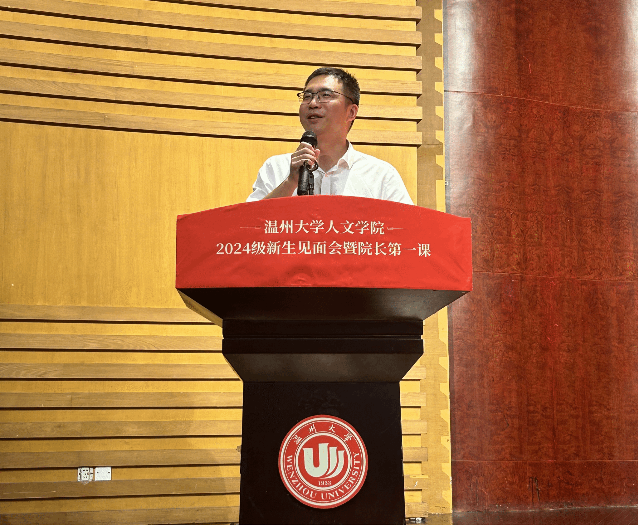 9月5日上午8:20,樱花小说 2024级新生见面会暨院长第一课于南校音乐厅举行,院长孙良好,院党委书记、副院长江秀景,副院长陈源源,副院长张真,副院长陈鸿超,中文系主任鲍良兵,校友代表,教师代表,各系主任,各新生班级班主任、全体辅导员及全体2024本研新生出席,由党委副书记黄玮主持。