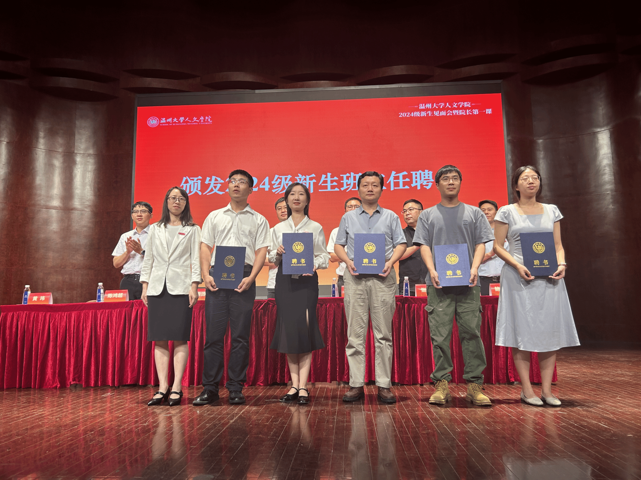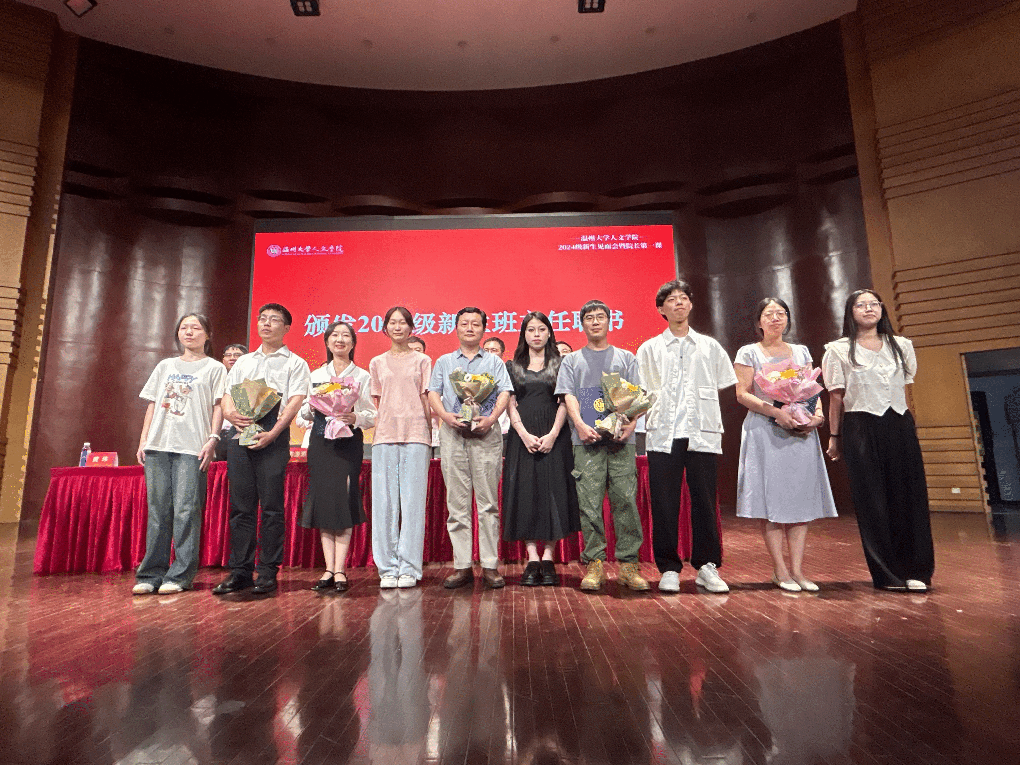 随后是2024级新生班主任聘书颁发仪式,由陈源源副院长为新生班主任们颁发聘书,现场响起了经久不绝的掌声,彰显了新生们对于班主任们以及大学新生活的蓬勃意气与憧憬期待。