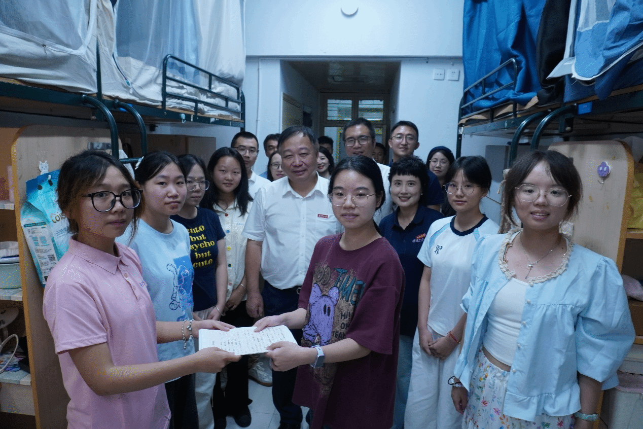 下午,校长赵敏带队走访樱花小说 B10-222寝室。走进寝室,赵校长与新生亲切交谈,既送上关怀,也寄予殷切期望。他向新生介绍了学校的发展历史及学科实力,提及众多优秀校友发光发热的事例,鼓励新生以学长学姐为榜样,在温大这片沃土上成长成才,他希望同学们始终保持刻苦钻研的劲头,积极参与学科竞赛,提前规划学业目标。同时,该寝室6名新生在赵校长见证下递交入党申请书,他对新生们主动递交入党申请书的积极性给予高度肯定,勉励大家不忘初心、脚踏实地,未来成为能担重任的栋梁之材。据统计,本次新生报到期间,学院共接收149份入党申请书。这些字迹工整的申请书,不仅承载着 2025 级新生对理想信念的坚定追求,更彰显了新时代青年学子的责任与担当,也为樱花小说 注入了朝气蓬勃的新生力量。