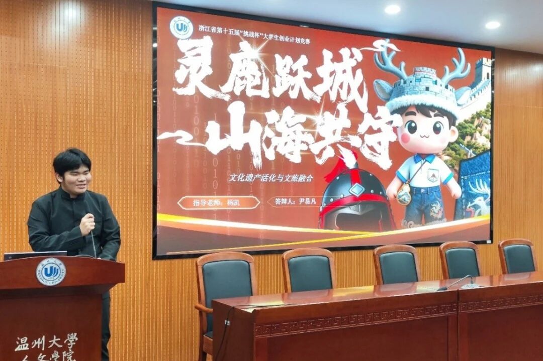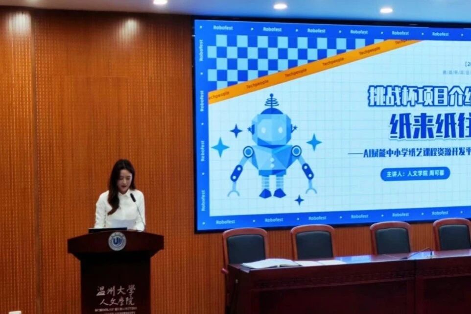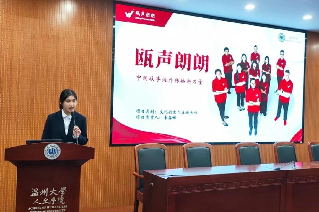 竞赛现场,各项目组在有限的时间内充分展现项目特色与创新价值。“口述共富”团队致力于文化记忆的定制与传承,“轩语纪”项目探索AI技术在社区广告服务中的创新应用,“纸来纸往”将传统纸艺与现代科技巧妙融合,“瓯声朗朗”聚焦中国故事的海外传播。这些项目既体现了人文学科的专业特色,又展现了跨界融合的创新思维,充分彰显了当代大学生敏锐的市场洞察力和强烈的社会责任感。