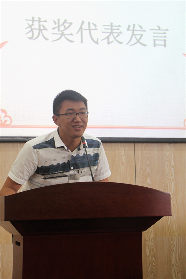首先,一段历届获奖者留言视频唤起了大家对白晖华发展历程的感动与感叹。然后,朱书记简要介绍了白晖华文学奖的相关情况和十年来走过的历程。白晖华文学奖由温州籍文学爱好者吴明华先生出资设立,旨在鼓励热爱写作的大学生坚持文学梦想。十年间,白晖华文学奖在许多我校大学生的写作经历中,留下了韫玉含辉的一笔,托起了学子们的写作梦。接下来,获奖者们上台领奖并合影留念,鲜红的奖状是对同学们写作最好的鼓舞。之后,一等奖获得者13中本储展鹏代表获奖同学上台发言。他谈到,我们在人生中应读三本书,首先是有字之书,即阅读量的积累;其次是无字之书,要用于去远方,去认识更多的人,找到属于自己的路;还有心灵之书,要找到自己的信仰,坚持一路激情、矢志不渝。朱闻武先生也进行了饱含感慨的发言。他说,白晖华文学奖发掘了有才华的年轻人们,这个奖项也是同学们青春中很有成就感的事情。奖项发起人吴明华先生是优秀的作家和经商者,白晖华也是其对文学教育事业的关注与热爱最好的见证。这十年来,岁月轮转,文学奖能延续下来十分可贵。这得益于吴先生对其的呵护与珍惜,也离不开温大校方的重视与培育。文学的梦想是本无字之书,是一切艺术的母体,愿文学事业发展源远流长。