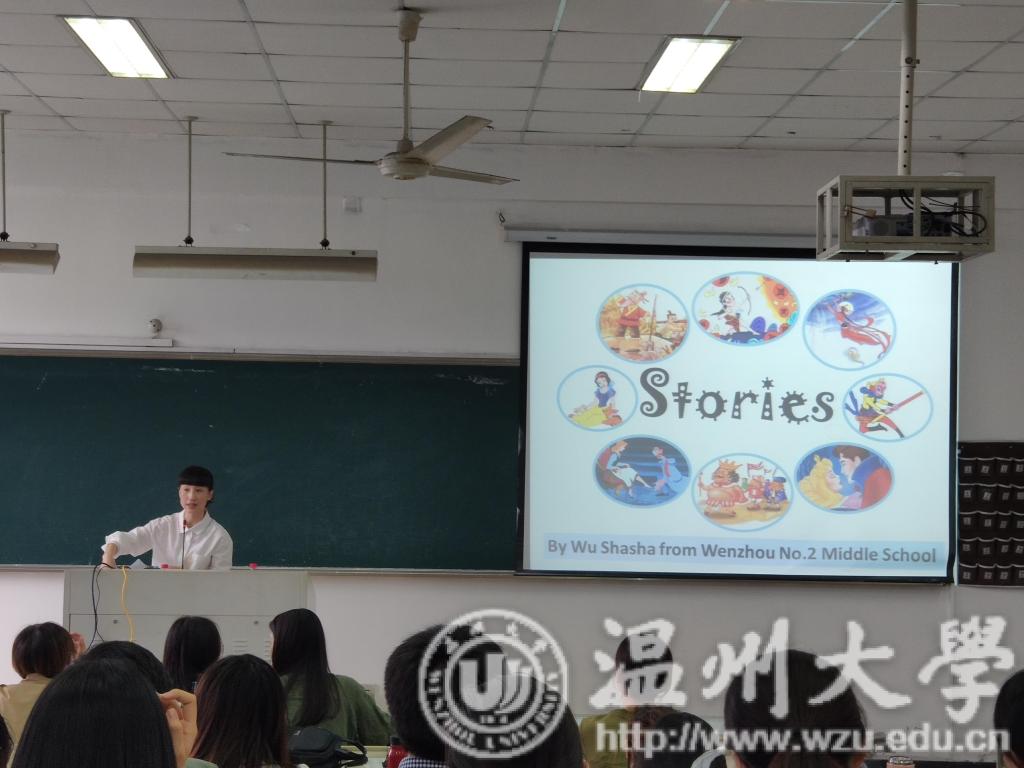 吴莎莎老师先给同学们讲述了自己曾经上课的过程。老师先在黑板上画出了一个故事的简笔画,让学生猜测这个故事是什么,最后揭露这个故事是Hansel and Gretel,并引出这个故事中的who, where, where, why, what。吴莎莎老师的上课方式,给师范班的同学们很大的启示,大家都受益匪浅。吴老师点出课堂上的问题仅仅是一个开头,最重要的是老师的追问。此外,对不同程度的学生要采用不同的教学方式,老师要做到随机应变。最考验一个老师的并不是上课的设计,而是对文本的解读能力。吴莎莎老师的各种建议,让同学们对教师这份职业有了更深的理解。