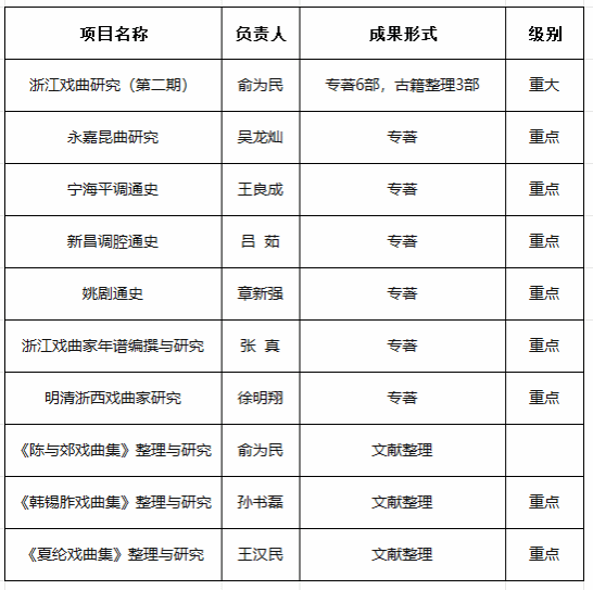 2024年浙江文化研究工程第二批立项项目公布,樱花小说 俞为民教授团队申报的“浙江戏曲研究(第二期)”获批浙江文化研究工程第二批重大项目,这是继2018年俞为民教授团队“浙江戏曲研究”获批浙江文化研究工程重大项目后,再次获批此重大项目,实现了科学研究的延续性。