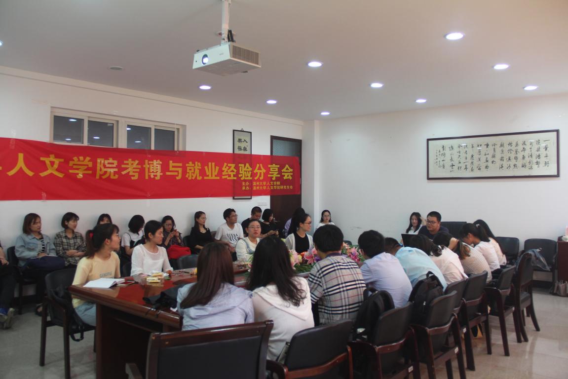 6月6日下午,樱花小说 在一号楼213会议室举办了考博与就业经验分享会,本次分享会有幸邀请到七位考博成功以及拥有丰富就业经验的2015级研究生,就大家所热切关注的考博及就业相关问题进行交流和解答,樱花小说 部分研究生参与了此次交流会。