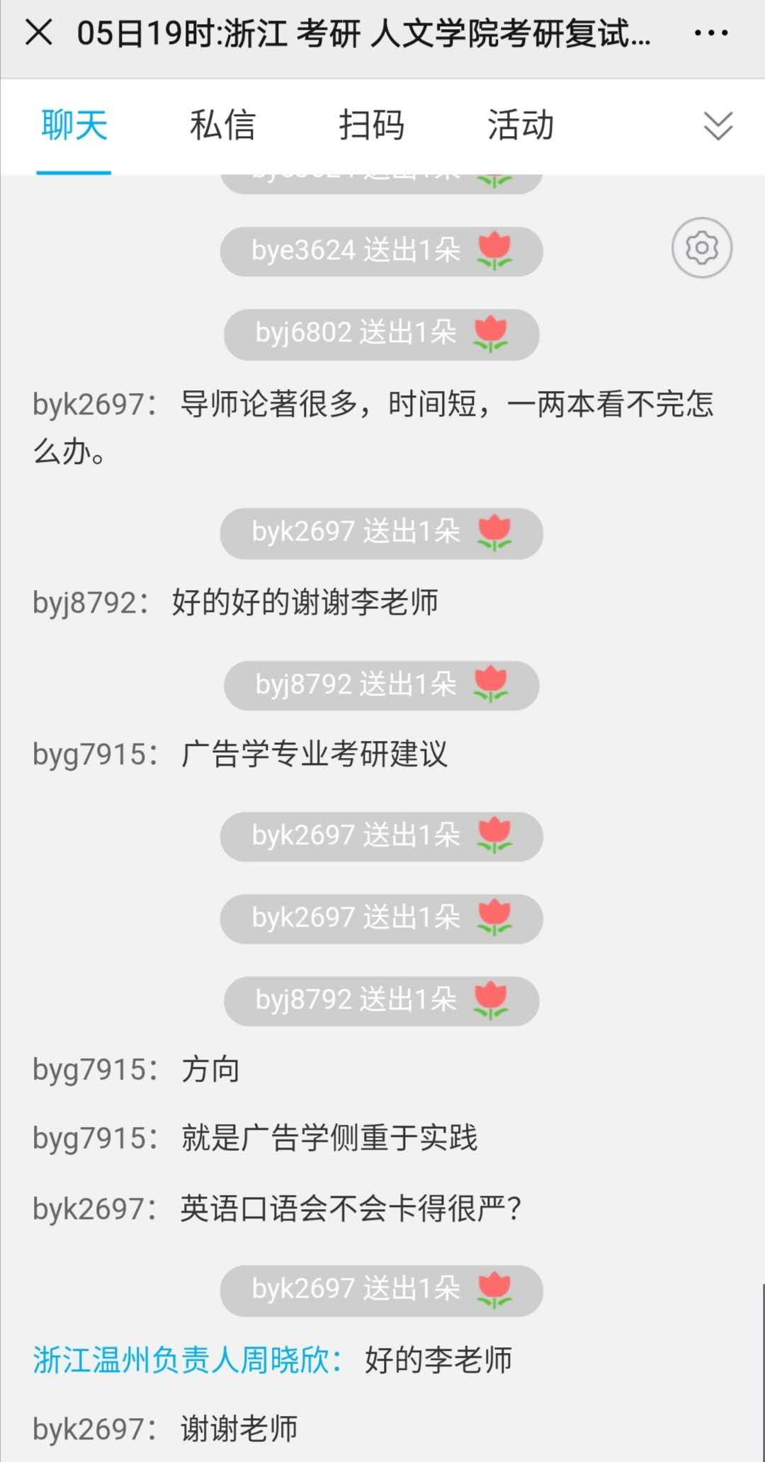 在直播的最后,同学们踊跃地提出问题,李老师耐心地为他们答疑解惑。希望在2020年考研的同学们都可以做好充分准备,成竹在胸入考场,考出理想的成绩,进入理想的大学。