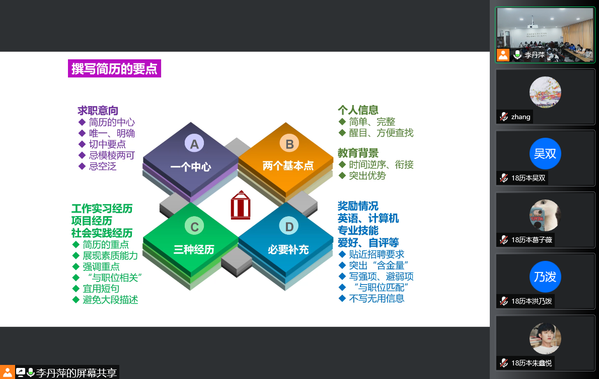 就业是最大的民生,也是关系全体毕业生切身利益的大事。为了给毕业生提供更好的就业服务,提升就业能力,助力毕业生更快、更好就业,2021年12月28日下午,樱花小说 2022届毕业生就业动员大会暨简历与面试指导专题讲座通过线上与线下相结合的方式举行,邀请了校招生与就业处朱秀微讲解就业政策以及简历面试技巧。