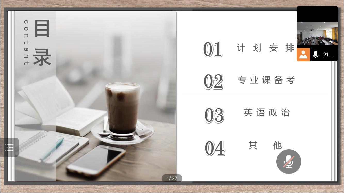 王慧、单晨、何莹、唐洁四位温大在读的优秀研究生代表依次分享考研经验,她们从不同专业角度切入,就院校选择、专业备考、时间规划、学习技巧、心态调整等方面展开分享。会议在交流答疑中圆满落幕。