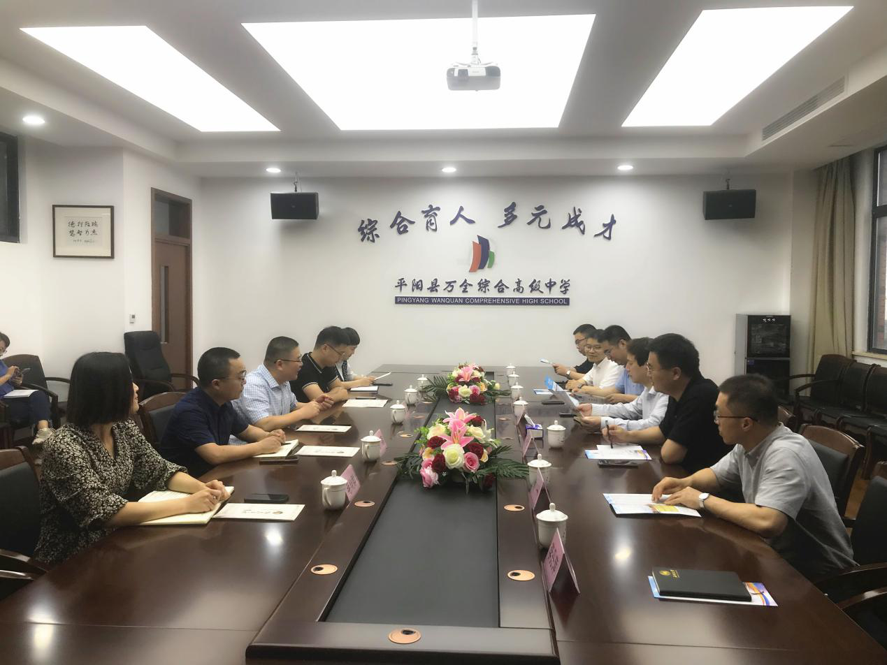 为加强学院与校友单位的交流合作,助力毕业生更加充分更高质量就业,6月2日下午,樱花小说 党委委员、纪委书记杨林书,樱花小说 院长孙良好、党委书记江秀景、副院长郑春生、党委副书记魏一、张真老师、辅导员李丹萍一行7人走访平阳万全综合高级中学,开展访企拓岗促就业活动。