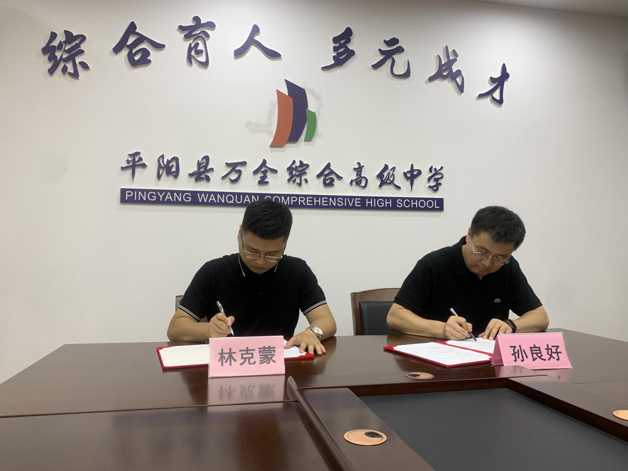 温州万全教育集团董事长陈孝杰与平阳万全综合高级中学校长林克蒙一行热情接待,并带领杨林书书记一行参观了学校。座谈会上,陈孝杰董事长介绍了集团整体发展概况,林克蒙校长围绕平阳万全综合高级中学办学历史、育人理念、教师成长等方面展开交流。杨林书书记说明了本次来访的目的与意义,期望通过校企合作,实现资源共享。孙良好院长介绍了学院基本情况,包括在校学生概况、师资力量、专业特色等。双方就如何深化合作进行探讨,表示接下来将积极开展多层次、多形式的合作。座谈交流后,双方签订了共建就业实习基地协议,举行了实习基地授牌仪式,正式在平阳万全综合高级中学建设“樱花小说 就业实习基地”。