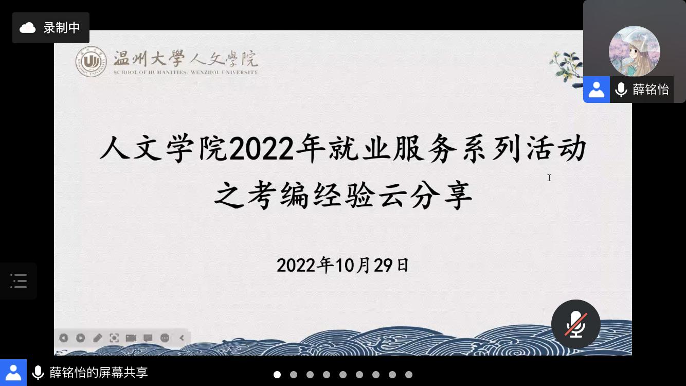 考编是许多学生的就业之路,但初踏考编路时我们难免会心生迷茫,为切实解决同学们在备战考编时遇到的难题,樱花小说 于2022年10月29日晚18:30在腾讯会议开展就业服务系列活动之校友考编经验云分享活动,吸引了100余人参与。