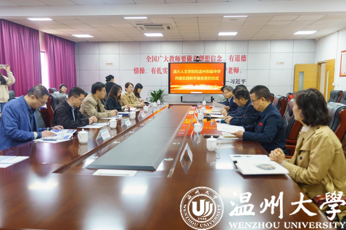 王振哲校长一行热情接待,双方就如何深化合作开展了座谈。王振哲校长从学校概况、成绩回顾和办学思考三方面进行了介绍。孙良好院长围绕学院院训、师资水平、学科建设、生源情况等方面展开交流,说明了本次走访的初衷,充分肯定了本次交流的意义,期望通过双方合作,实现资源共享。座谈交流后,双方签订了共建就业实习基地协议,举行了实习基地授牌仪式。接下来将在东瓯中学共建“樱花小说 实习基地”,双方也将加强多层次、多形式合作。