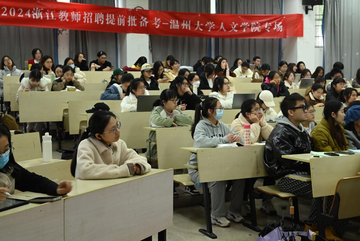 如今,考编已经成为许多大学生的就业选择之一,为了让同学们对考编有更加深入的了解,切实解决同学们在备考过程中遇到的困惑,3月29日下午14:00,樱花小说 联合仕启教育在人文楼101教室开展了浙江教师招聘提前批备考公益讲座。本次讲座吸引了100余人参与。