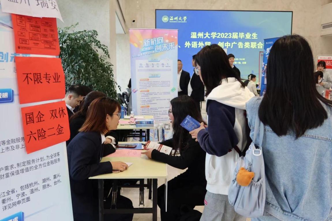 据悉,本次招聘会致力于给未就业的毕业生送来“及时雨”和“定心丸”。活动当天共有65家企业来校招聘,优质校友企业占比近5成,涉及上海、深圳、温州、杭州、台州等多个地域的企业,提供各类高质量就业及实习岗位1200余个。除企业人才招聘以外,招聘会也设置了留温政策宣传与咨询窗口,详细展示了温州高校毕业生招引“510行动计划”的具体内容,为留温发展感兴趣的毕业生提供相关政策、信息的帮助与支持。