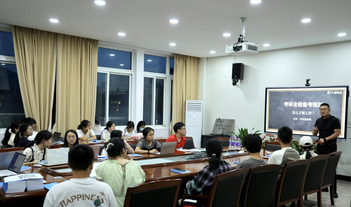 为了让同学们对考研有更加深入的认识,明晰考研备考方向,6月5日晚上19:00,樱花小说 联合文都教育于人文楼213学术交流中心举办了2024年考研指导规划公益讲座。