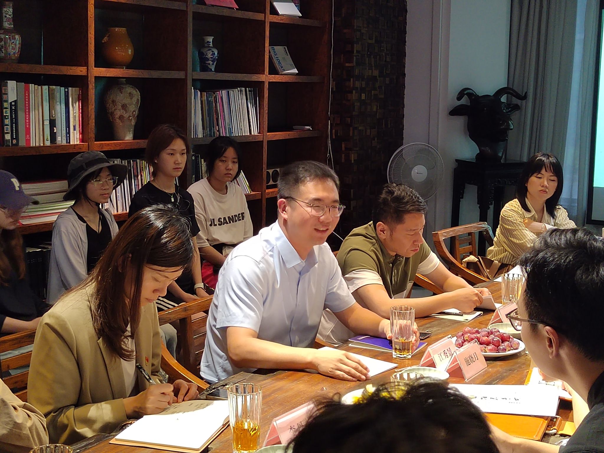 座谈会上,施总就公司氛围、硬软件设施等方面进行了详细介绍。钱梦忆总经理围绕“星球发现”项目,结合具体视频和故事,深度剖析了公司如何结合地域特色,挖掘文化内涵,通过创意策划和精准营销,打造城市文旅IP,推动城市旅游业持续发展的路径规划,使同学们受益良多。院党委书记江秀景介绍了学院近年来在人才培养、专业建设方面的具体情况,分享了学院在提升学生综合素质与专业能力方面所取得的显著成效。江书记代表学院向公司负责人表达了由衷的感谢,感谢他们为学生提供了宝贵的交流和学习机会。他表示,此次活动不仅是一次深入了解企业需求和文化的难得机会,更是一次拓展岗位资源、实现双方共赢的重要契机。双方就暑期实习、招聘岗位等方面进行了深入的交流和探讨,达成了初步的共识。