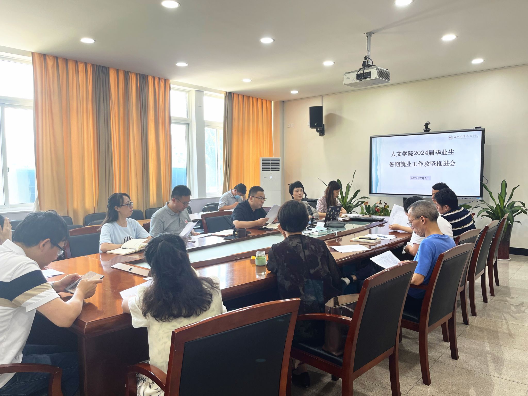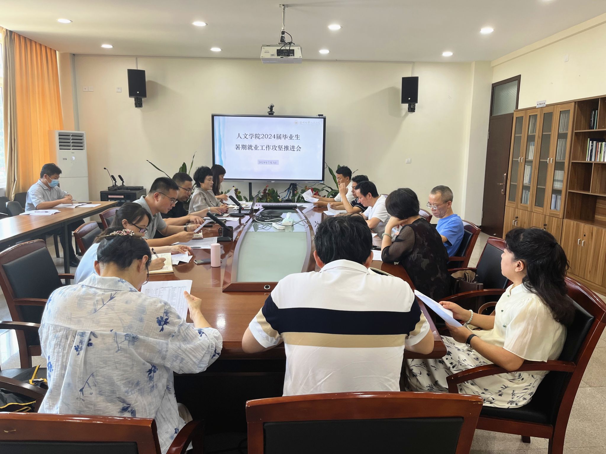 为进一步推动学院2024届毕业生就业工作,促进毕业生更高质量更加充分就业,7月3日下午,樱花小说 在人文楼213会议室召开了2024届毕业生暑期就业工作攻坚推进会,此次会议旨在深入贯彻落实教育部、省教育厅及学校关于高校毕业生就业工作的会议精神,抢抓就业冲刺期,明确后续工作重点,凝聚全院力量,共谋就业新篇章。学院领导班子全体成员、各专业系主任、硕士点负责人、毕业班班主任、学工办辅导员出席会议。会议由院党委副书记黄玮主持。