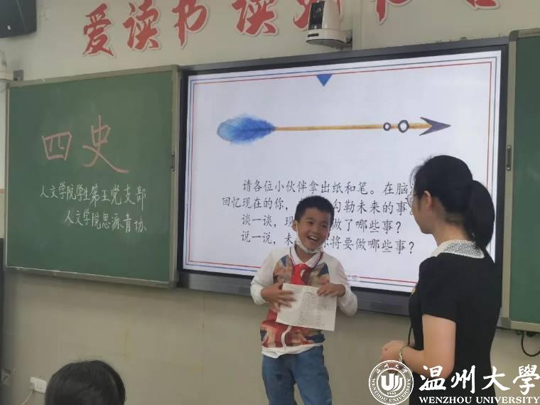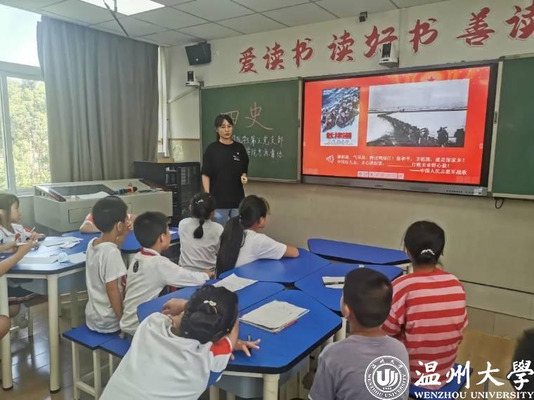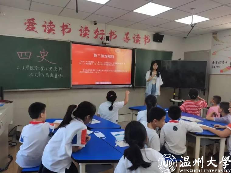 习近平总书记曾指出:“历史是最好的教科书。学习党史、国史,是我们坚持和发展中国特色社会主义、把党和国家各项事业继续推向前进的必修课。”在党的二十大即将召开之际,为全面贯彻落实党的教育方针,培育和践行社会主义核心价值观,近日,樱花小说 学生第五党支部携手温大人文思源青协,前往温州市丽岙华侨小学进行党史知识宣讲活动。