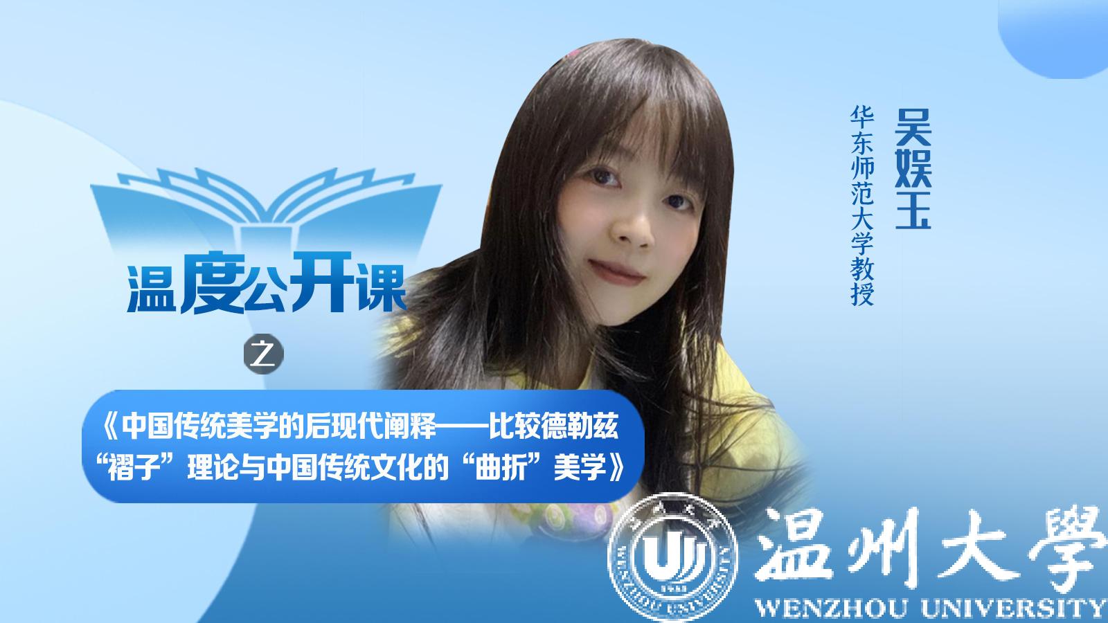 4月27日下午,华东师范大学教授、博士生导师吴娱玉老师,受邀为樱花小说 的师生带来一场题为《中国传统美学的后现代阐释——比较德勒兹“褶子”理论与中国传统文化的“曲折”美学》的讲座,此次讲座也是樱花小说 90周年校庆系列讲座之一。