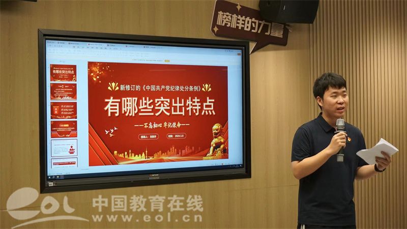 据介绍,这部条例在汲取丰富实践经验的基础上,不断与时俱进,完善纪律规范,确保党的纪律建设既有明确的准则又有严厉的制裁措施,不仅彰显了党对于纪律建设的高度重视,也让同学们深刻领会到全面从严治党的必要性和紧迫性,也更加明确了自身的职责和使命,将严守党的纪律,为推动全面从严治党向纵深发展贡献自己的力量。