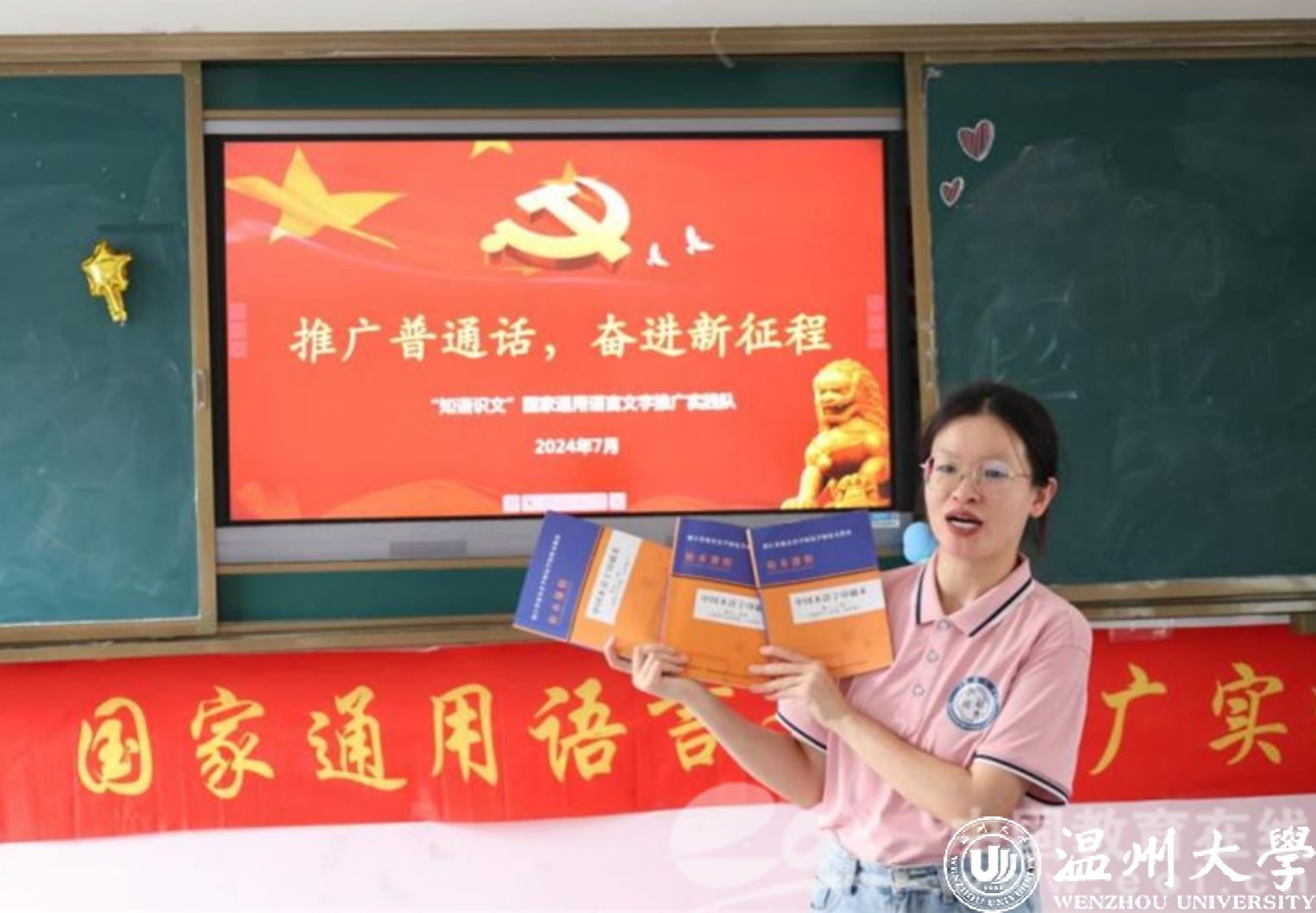 实践队成员们以“推广普通话,奋进新征程”为主题进行理论微宣讲,倡导孩子们从自身做起,从现在做起,互相鼓励,说好普通话,共同创建和谐语言文字的校园环境。
