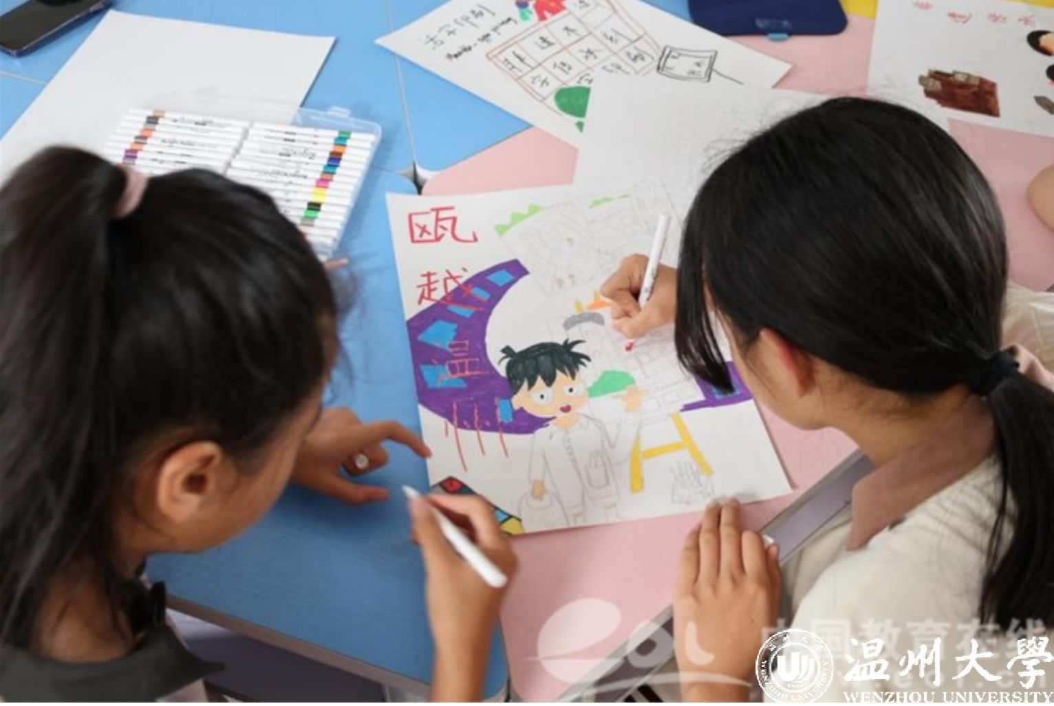 实践队成员们用温暖的“大手”和真诚的陪伴,为暑期留乡儿童们带去一抹发自内心的微笑。“大”手拉“小”手,一同绘制着自己心中的家乡,与此同时,实践队成员与孩子们相互分享自己的暑期生活,拉近了彼此心和心之间的距离。