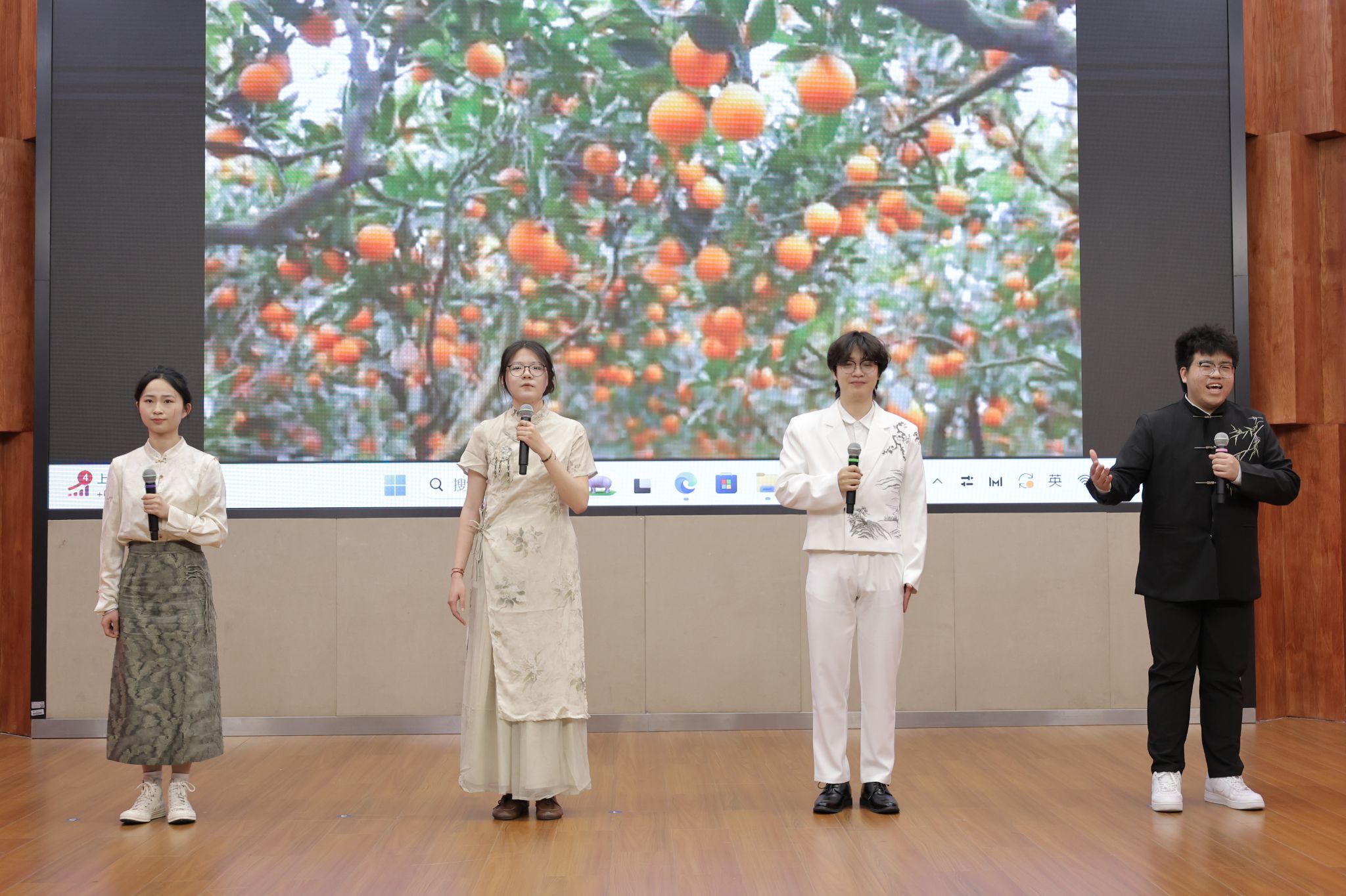 在经典诵读赛道上,参赛者们各展风采,凭借扎实的文学功底和精湛的朗诵技巧诠释经典。教育学院的潘奕瑶与钱炫合在作品《等待》中,深情诉说了邓稼先与许鹿希跨越二十八年的守望,这是个人情感的史诗,更是民族精神的缩影;樱花小说 曹光豪、彭帅、丁熠冬、叶佳诚四人组的作品《月光下的中国》以诗性笔触织就山河入梦的磅礴画卷;唐佳楠、张雅诗、唐森浩、石嵩言四位同学则用《诗意中国》传递文化血脉中的浪漫情怀。他们或激情澎湃,或深沉婉转,起伏停顿间精准地把握着节奏韵律,赢得台下观众阵阵掌声。