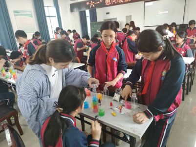 在此次活动中,樱花小说 志愿者为樟台学校五年级的学生带来了一堂别开生面的《“消失”的水——人造雪》课程。课程以“消失的水”的魔术开场——透明水杯中的水倒入另一个容器后竟“凭空消失”,引得孩子们惊叹连连。随后,大家手持杯子、吸水树脂和色素,化身“小小科学家”,在志愿者的耐心指导下亲手制作多层渐变的“彩虹瓶”,让科学思维在指尖悄然萌芽。当孩子们捧着自己制作的水凝胶瓶画时,眼中闪烁的不仅是对作品的自豪,更是对科学探索的热爱。这堂充满趣味的科学课,让学生在“玩转科学”的沉浸式体验中,真正成为知识的探索者与创造者。