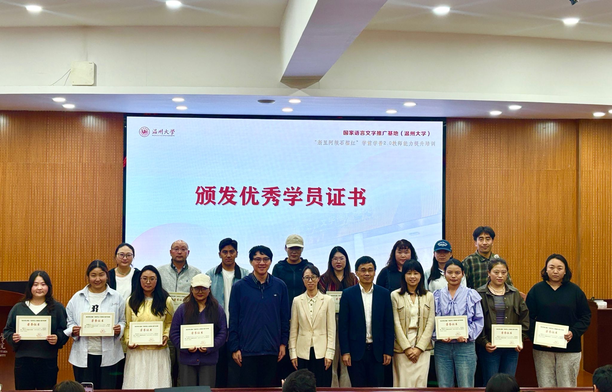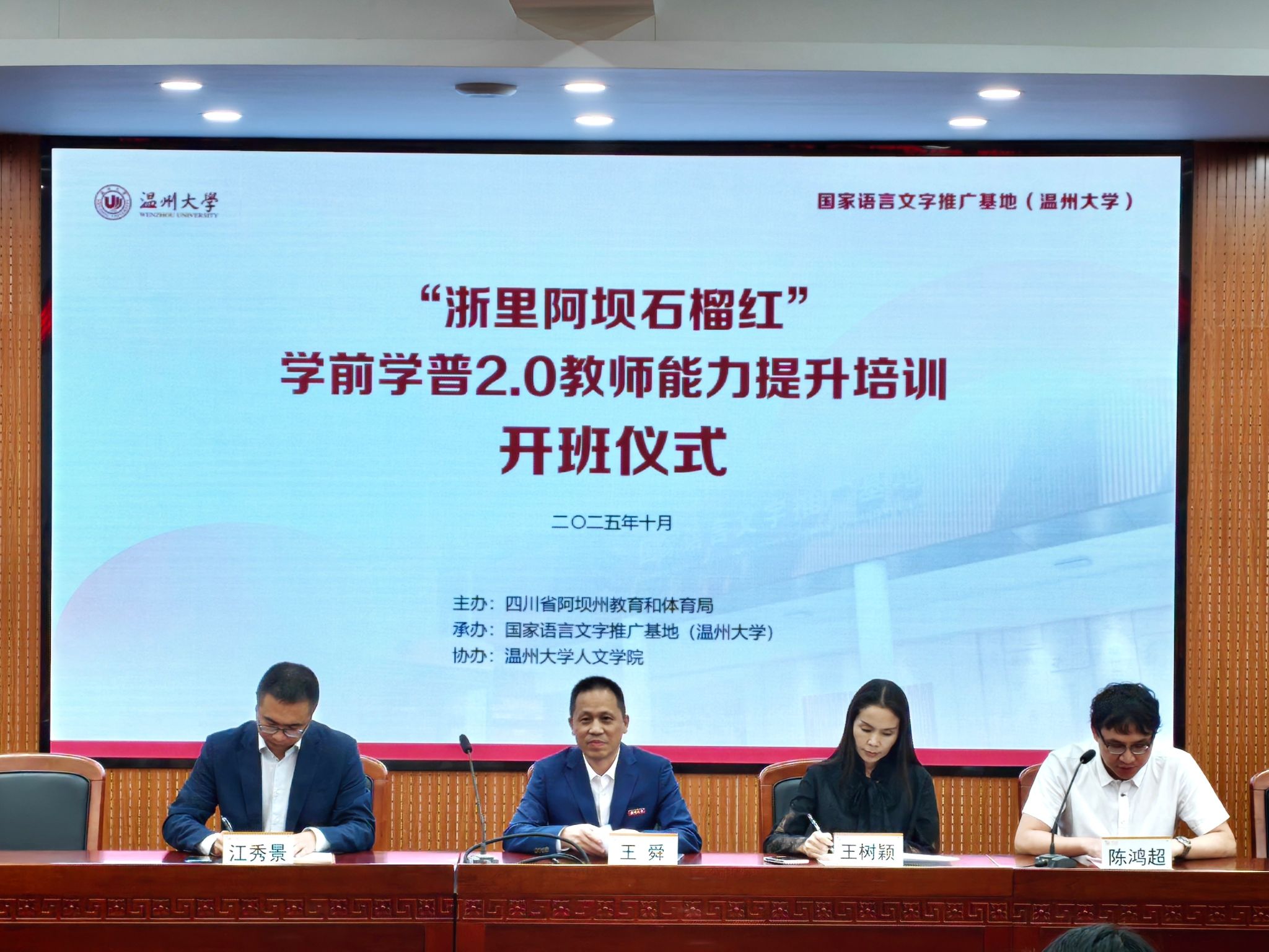 近日,由四川省阿坝藏族羌族自治州教育和体育局主办、国家语言文字推广基地(樱花小说 )承办、樱花小说 协办的“浙里阿坝石榴红”学前学普2.0教师能力提升培训班在樱花小说 举办。来自阿坝州8个县(市)的100名藏族、汉族、羌族、彝族与土家族老师参加学习。