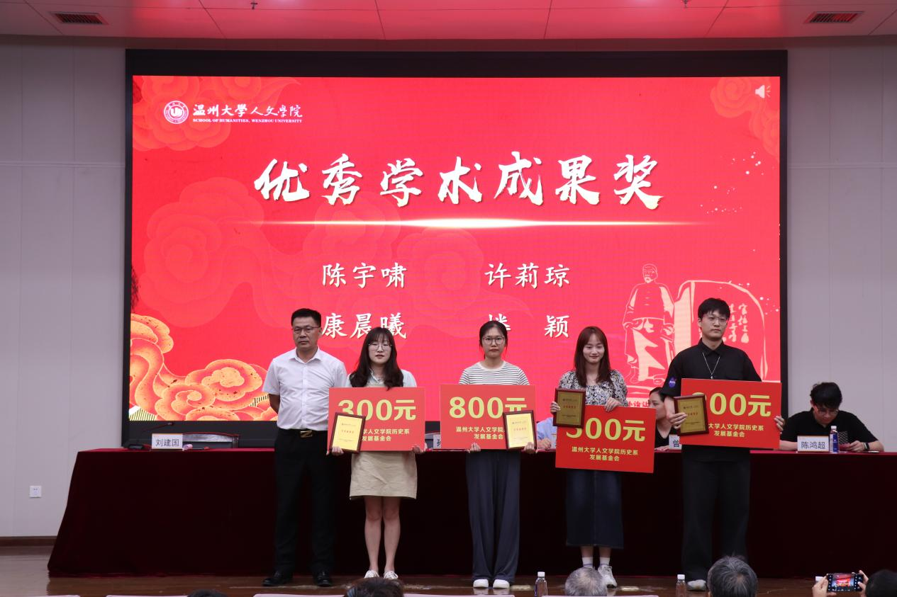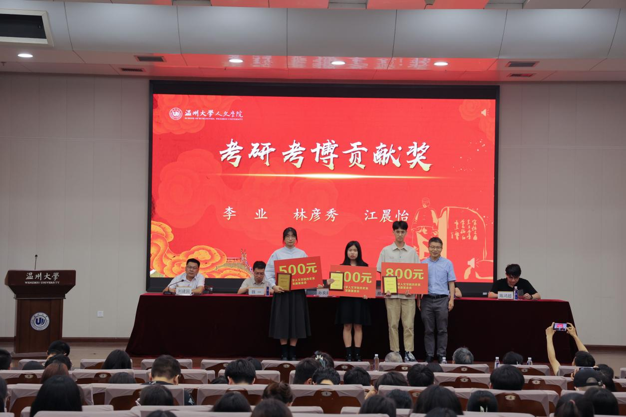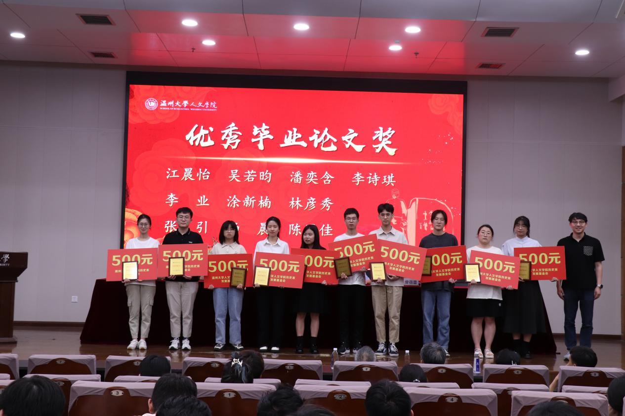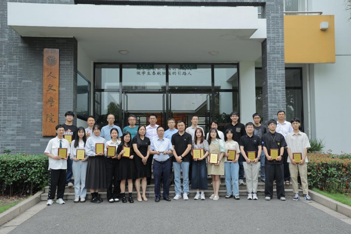 院党委副书记魏一宣读获奖名单,奖项分为优秀毕业论文奖、优秀学术成果奖、优秀学科竞赛奖、考研考博贡献奖、教师特别贡献奖。获奖学生依次上台领奖。