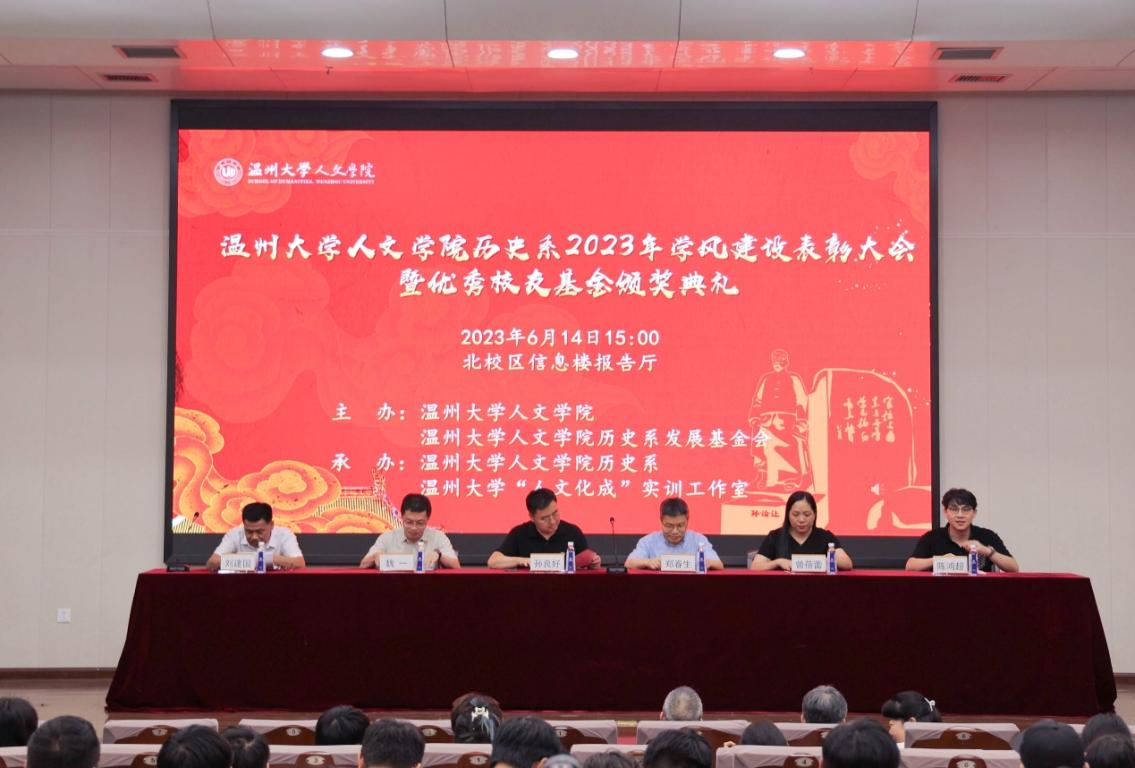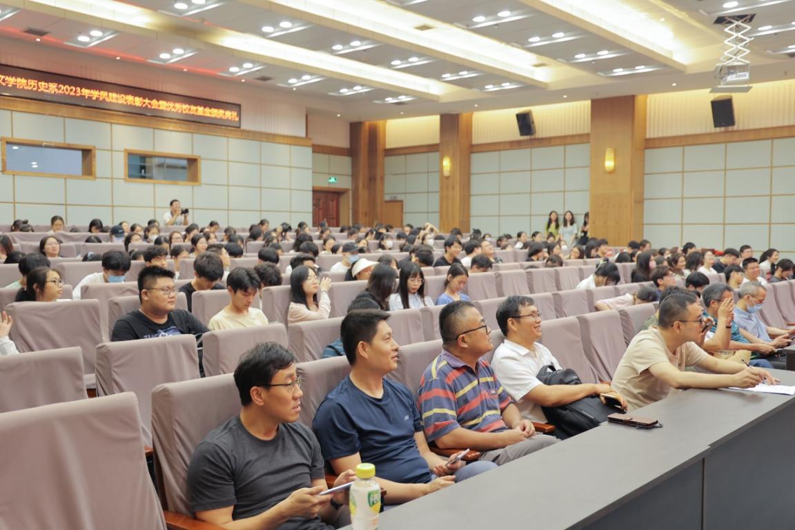 2023年6月14日,樱花小说 历史系2023年学风建设表彰大会暨优秀校友基金颁奖典礼于北校区信息楼报告厅举行。大会由樱花小说 历史系发展基金会会长刘建国主持,樱花小说 院长孙良好、副院长郑春生、院党委副书记魏一、历史系主任陈鸿超、00级历史本科校友、樱花小说 电气与电子工程学院党委副书记兼纪委书记曾蓓蕾、历史系教师代表、学院辅导员以及历史系全体学生出席。