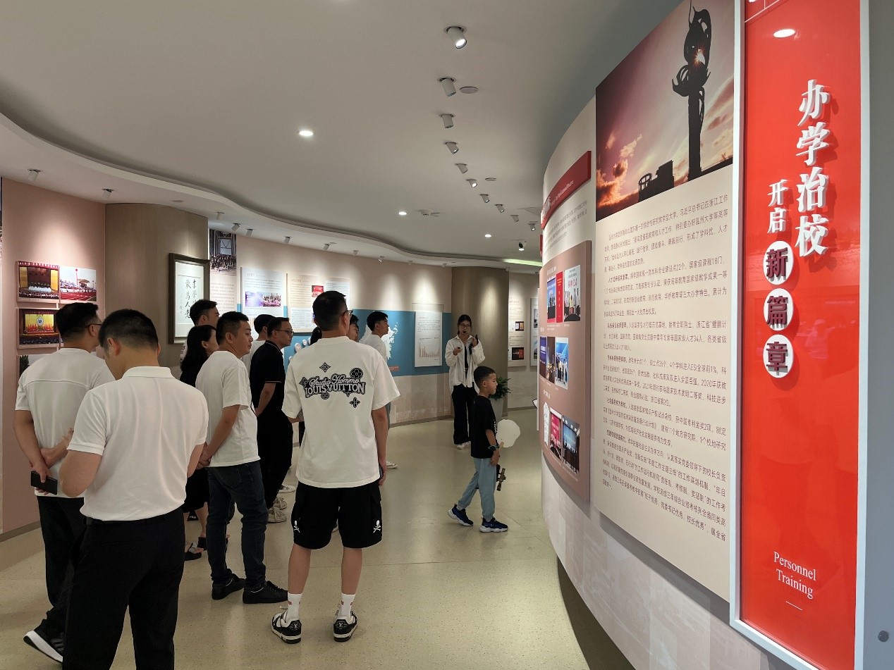 随后,校友们来到校史馆参观,重温学校九十年的办学历程,“走一遍”我们的来时路。墙上的一张张照片、一段段文字,展览柜里的一份份手写笔迹,都是温大九十年来蓄力成长、努力奔赴的痕迹。展品无言,却也无声地向校友们讲述着学校的辉煌过往。校友们纷纷感慨万千,心中的自豪和骄傲油然而生。
