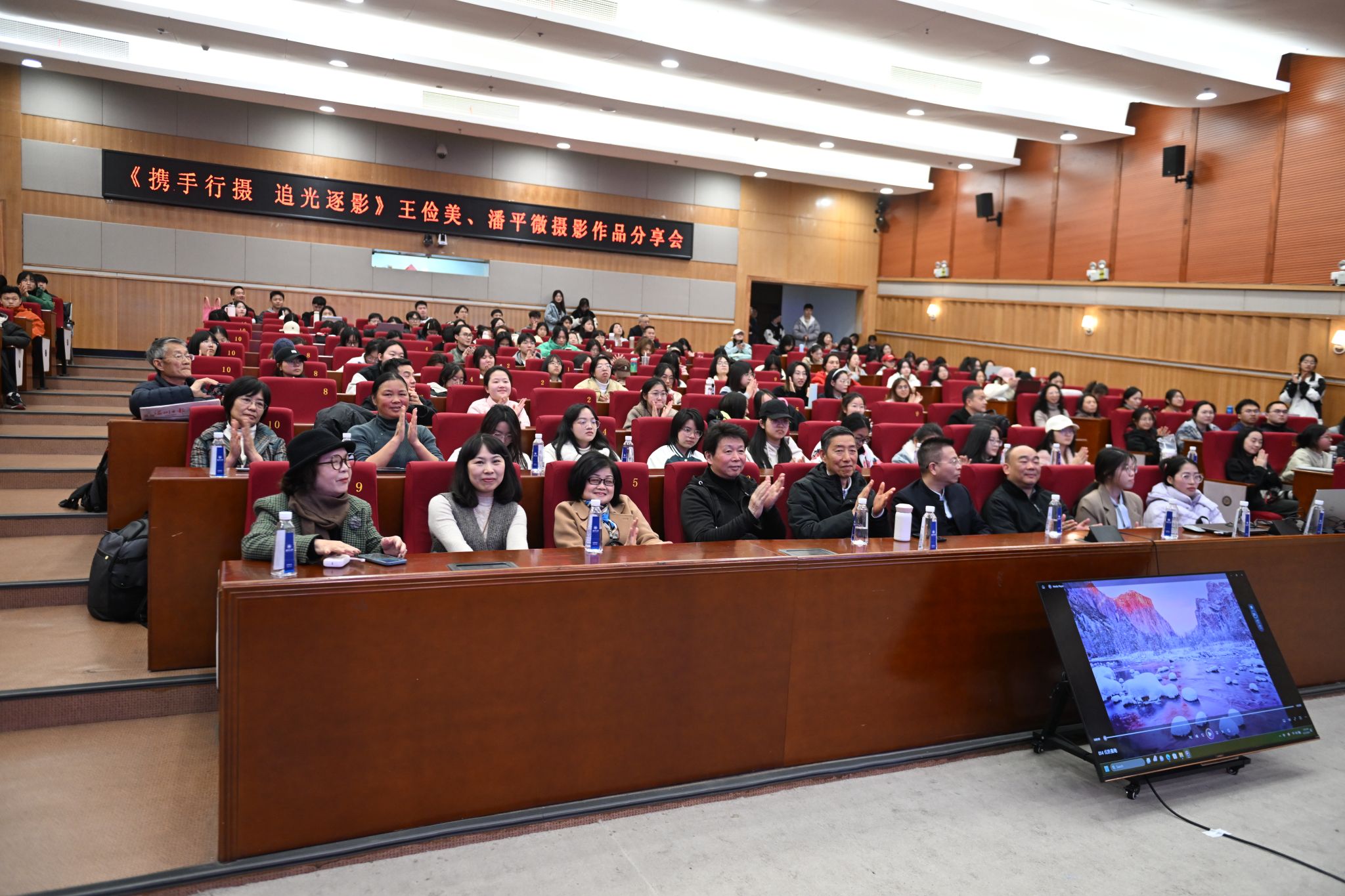 2024年3月13日下午,樱花小说 78级中文专业校友王俭美、潘平微《携手行摄,追光逐影》摄影作品分享会在樱花小说 育英图书馆二楼报告厅如期举行。樱花小说 校友会会长徐顺聪、樱花小说 校友与发展联络办公室主任陈宏毅和校友、教师、学生等共200余人参加本次分享会。