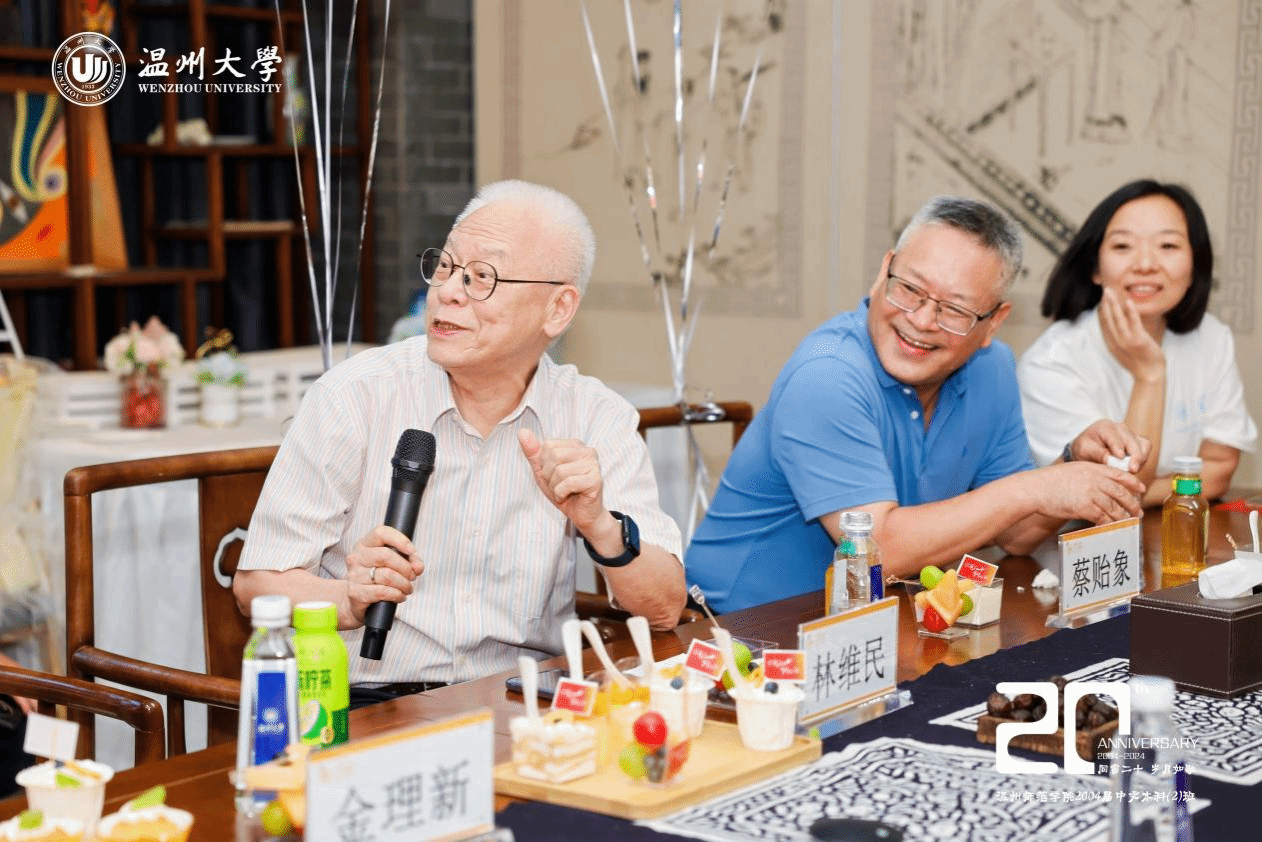 院长孙良好从师资队伍、专业建设、学科科研、人才培养等方面向校友介绍学校和学院的发展概况,详细阐述了学院在多个关键领域所取得的重要成果。校友们为学院建设的蓬勃发展感到欣喜与自豪。班主任骆锤炼以自身经历出发,娓娓道来,同各位校友分享近况。俞磊老师从写作教学的角度出发,为各位校友在写作教学方面提出宝贵建议。金理新老师提出,人应当活在当下,找到正确的位置,愉快地去生活。蔡贻象老师就美学在实际中的运用这一话题与校友们展开交流,分享了美学目前在旅游等领域的运用。林维民老师分享自己热爱体育与游览山水的志趣,呈现健康向上的生活态度,与同学们共勉。