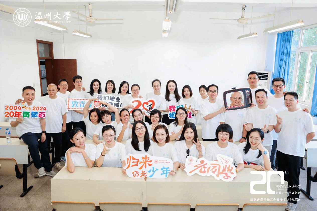 晴空万里,骄阳如炬。昔日同窗重返校园,回首当年青葱岁月,共续浓浓同学情谊。8月3日,温州师范学院2004届中文本科(2)班校友返校举办20周年同学会。