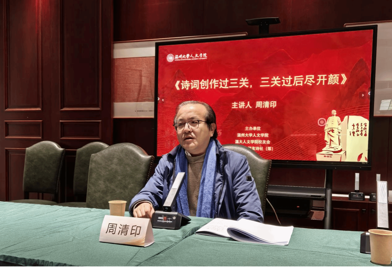 为更好传承弘扬中华传统文化,提高对近体诗的审美鉴赏能力和创作水平,12月15日下午,樱花小说 和樱花小说 校友会邀请中华诗词学会副会长、新华社高级编辑、半月谈副总编辑周清印先生在温州市鹿城区九山公园松台别业开设了题为《诗词创作过三关,三关过后尽开颜》的讲座,校友和学院师生积极参与。