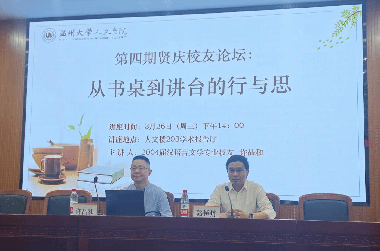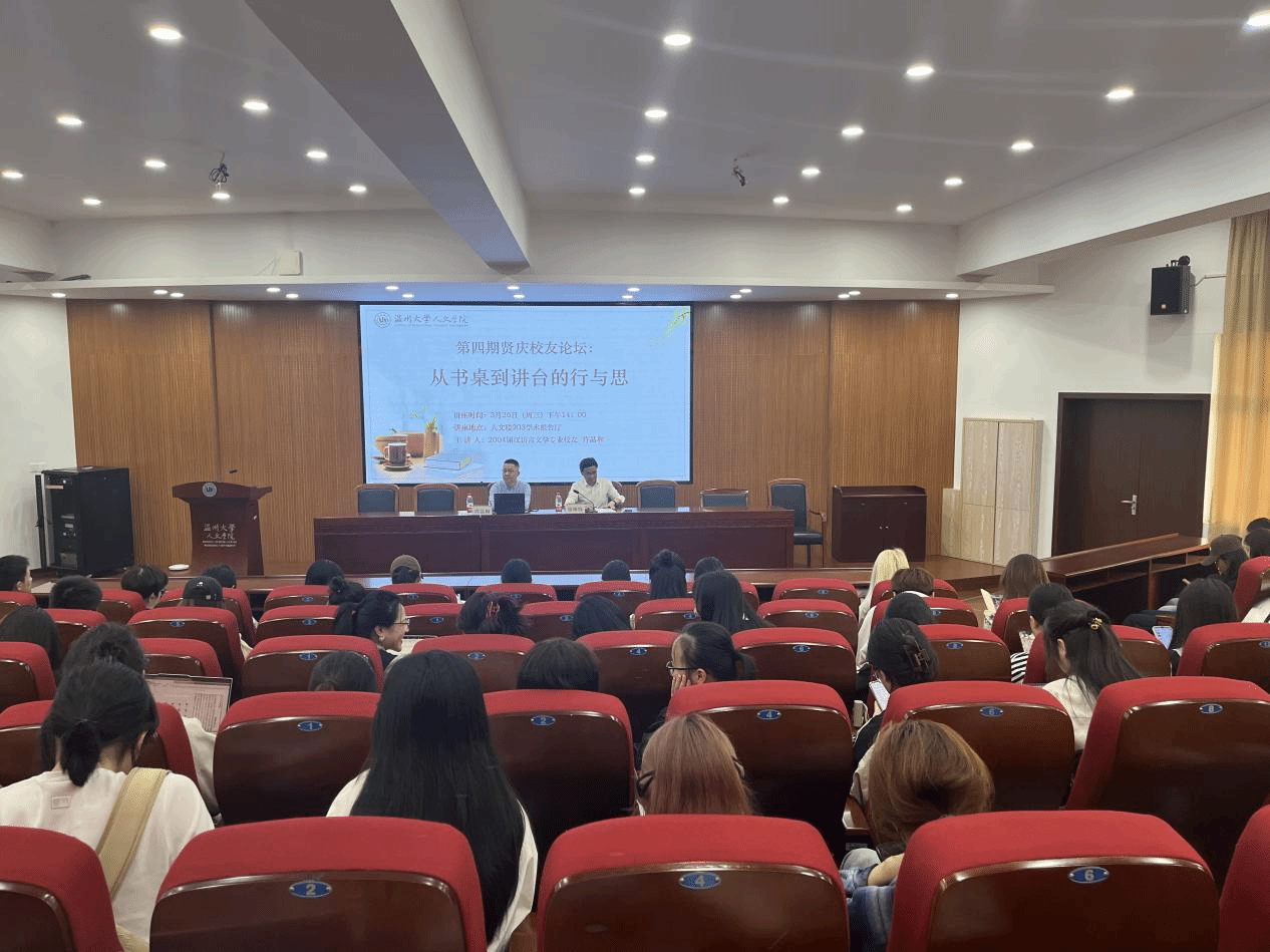 2025年3月26日下午,2004届汉语言文学专业校友许品和在人文楼203学术报告厅为樱花小说 学生带来了“从书桌到讲台的行与思”主题讲座。本次讲座由骆锤炼老师主持,100余位学生积极参与。
